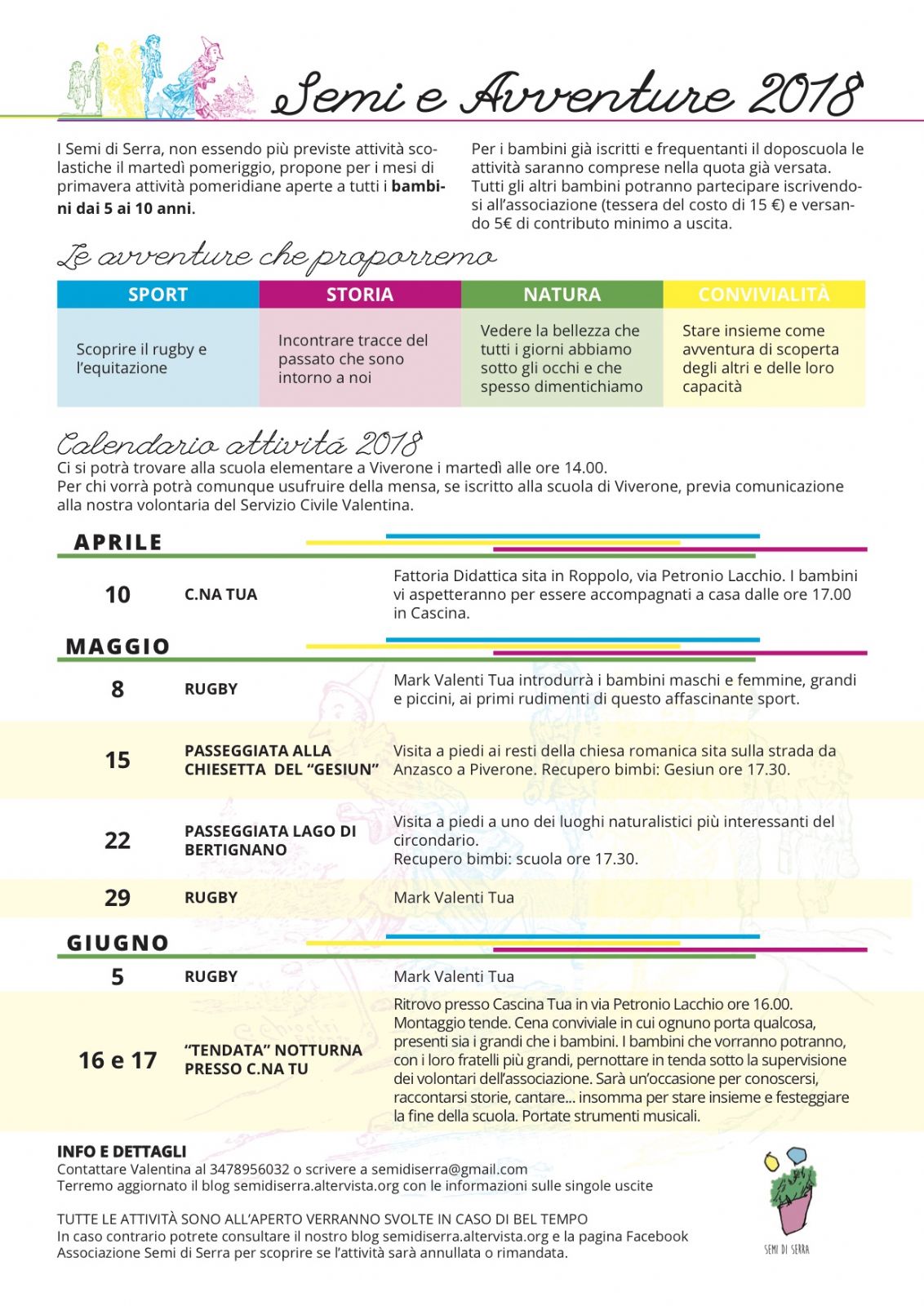 I Semi di Serra, non essendo più previste attività scolastiche il martedì pomeriggio, propone per i mesi di primavera attività pomeridiane aperte a tutti i bambini dai 5 ai 10 anni.