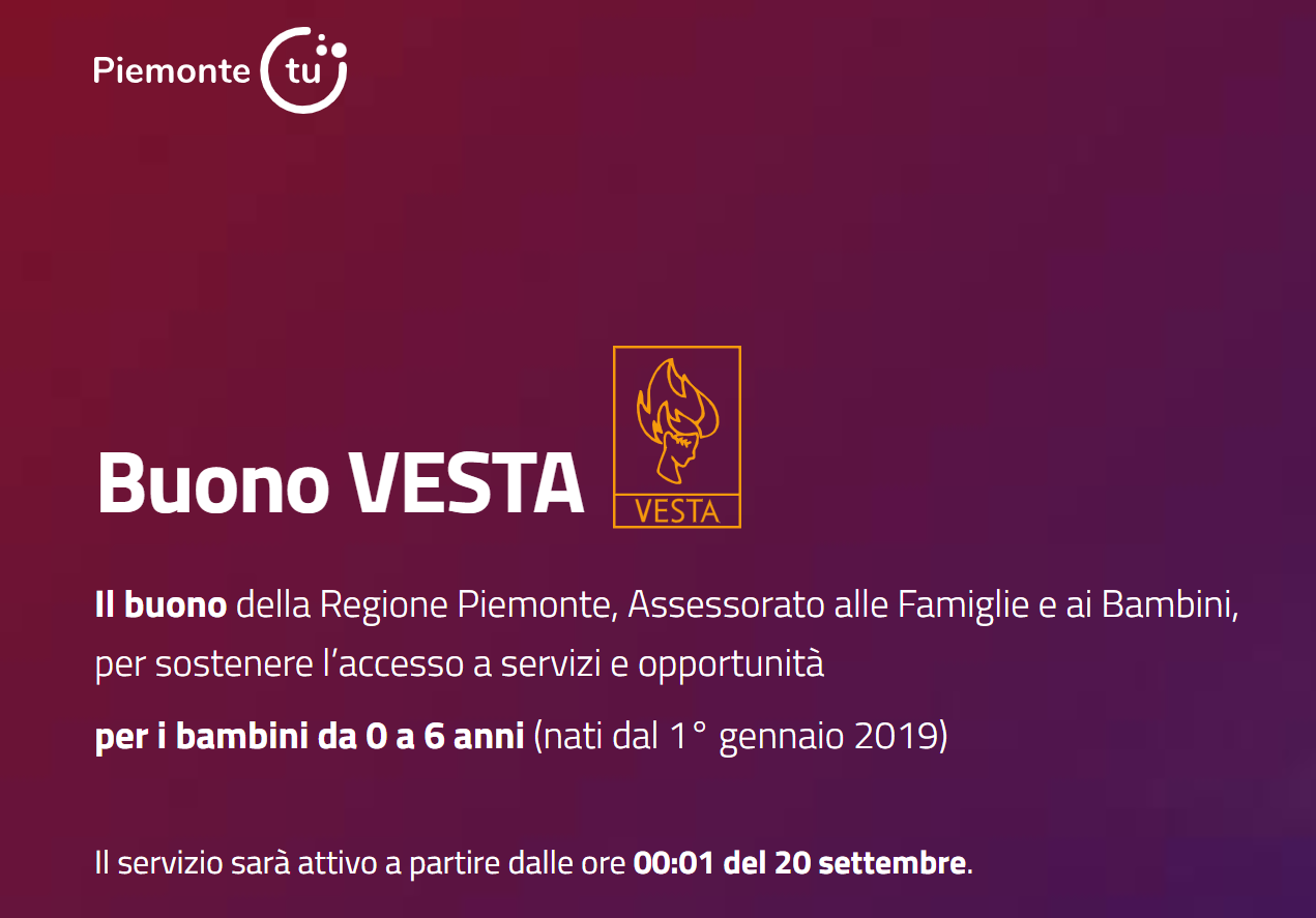 Il Buono Vesta è un nuovo voucher introdotto nel 2025 dalla Regione Piemonte per sostenere le famiglie residenti in Piemonte con figli di età compresa tra 0 e 6 anni, nati dal 1° gennaio 2019.